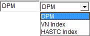 Danh sách Index. Hộp xổ xuống chứa các chỉ số trong thị. Người dùng có