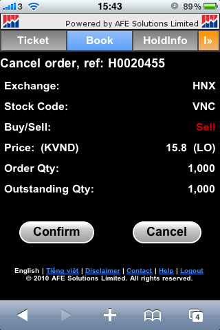 This menu provides status of your order(s). You also can amend or cancel your order from this menu.